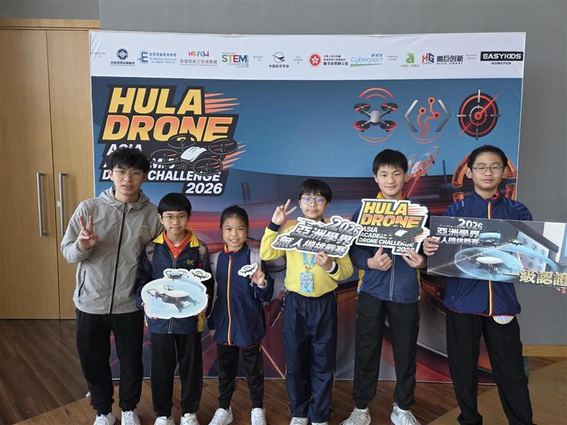 本校積極發展STEAM教育,鼓勵學生挑戰自己,參與各項校外比賽。本校學生於一月參與港學界無人機挑戰賽2026,成功在協作飛行挑戰項目榮獲一級認證資格(最高級別),亦在AR射擊及障礙賽獲得二級認證資格,雖然未能在一級認證組別中擊敗其他強勁對手,但希望各位同學再接再勵,爭取更好的表現。