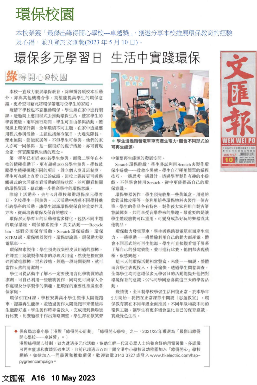 22-23年度:《文匯報》報導本校推動環保的經驗及心得